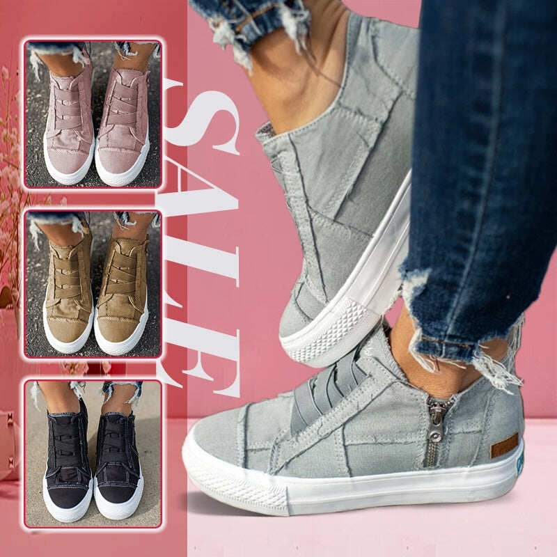 To tenisówki z ukrytą platformą na koturnie! Ten sneaker ma również oddychającą płócienną cholewkę, wkładkę „SuperFoamSock”, zamek błyskawiczny ułatwiający zakładanie i zdejmowanie oraz ozdobną gumkę na przyszwie.