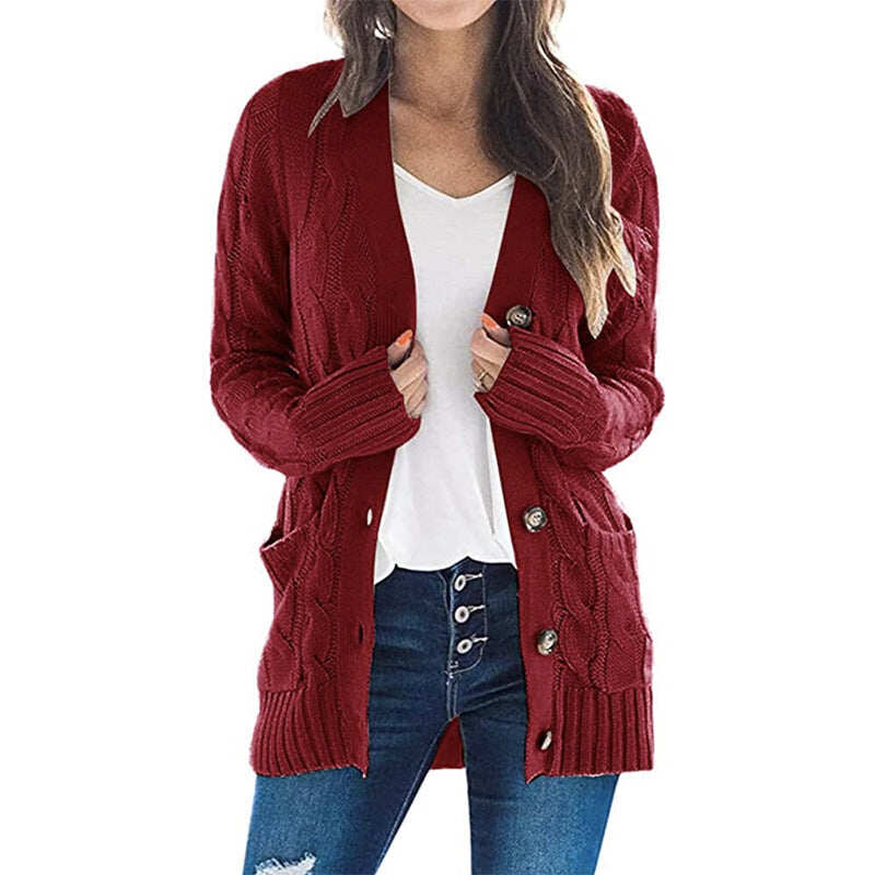 Cardigan deschis de toamnă pentru femei Pulover tricotat cu nasturi Buzunare cu nasturi Palton