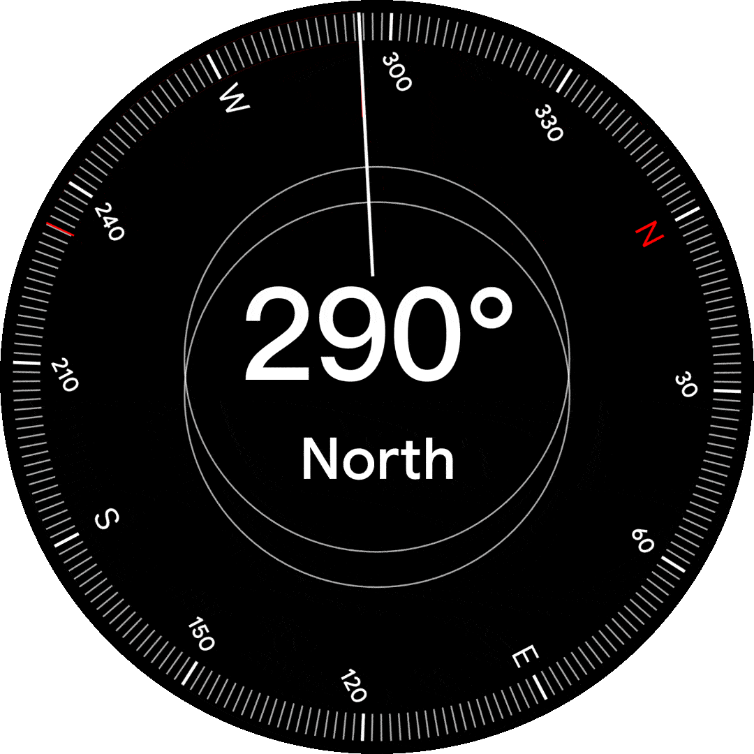 Saglabājiet orientēšanos, atrodiet ceļu atpakaļ uz nometni vai pat vediet jūs uz vietām, kur nekad neesat bijis. Šķērsojiet jebkuru reljefu, izmantojot TicWatch Pro 5 iebūvēto kompasu. Vienkārši pieskarieties, lai iestatītu virzienu, un pārvietojiet plaukstas locītavu, lai redzētu, cik tālu atrodaties no vēlamā virziena.