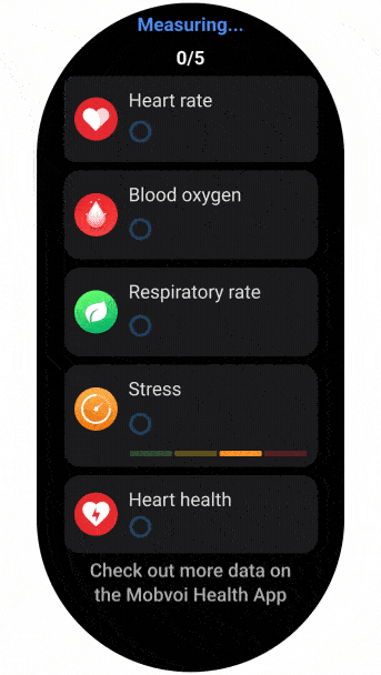 Tikai ar vienu pieskārienu TicWatch Pro 5 progresīvie algoritmi nodrošina 5 svarīgus veselības rādītājus 90 sekundēs: sirdsdarbības ātrumu, asins skābekli, elpošanas ātrumu, stresa līmeni un sirds veselību*. Iegūstiet tūlītēju savas vispārējās labklājības momentuzņēmumu jebkurā laikā un vietā.